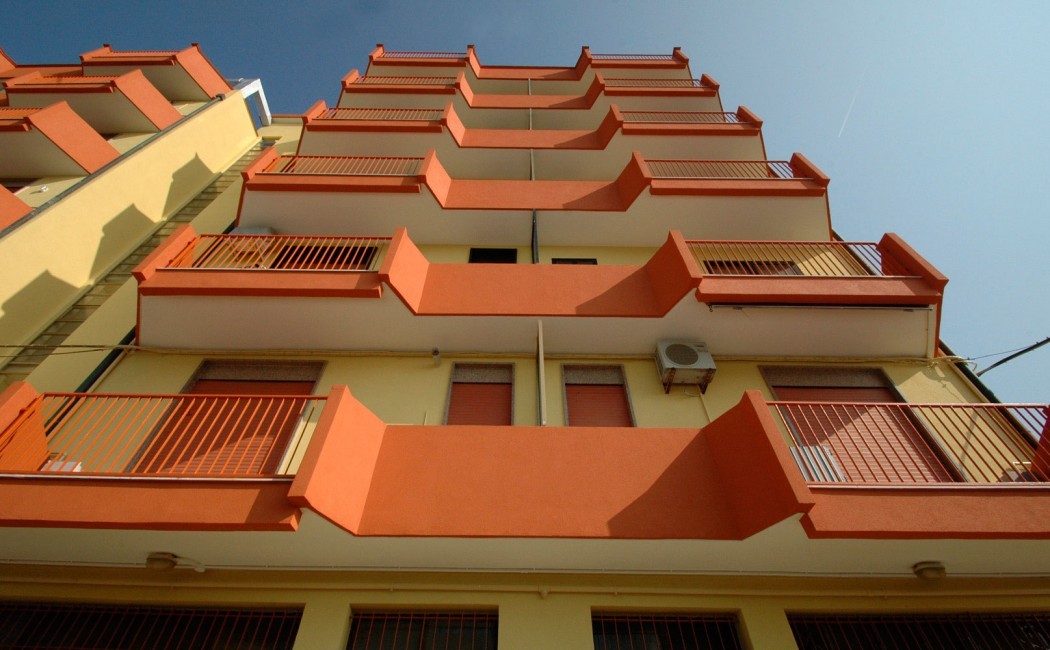 Il fabbricato ed in particolare i cementi armati si presentavano in avanzato stato di degrado con affioramento dei ferri d'armatura e pezzi strutturali in fase di stacco. Si è reso necessario un intervento di manutenzione completa e messa in sicurezza delle parti in cemento armato strutturali e parapetti dei poggioli nei quali sono state posti in opera cicli di risanamento conservativo specifici per superfici esterne particolarmente indicati e garantiti negli anni contro gli attacchi e l'aggressività dell'ambiente marino. Rifacimento completo di vasti tratti di intonaco di facciata ed opere di finitura esterne in rivestimento e tinteggiatura dei prospetti.